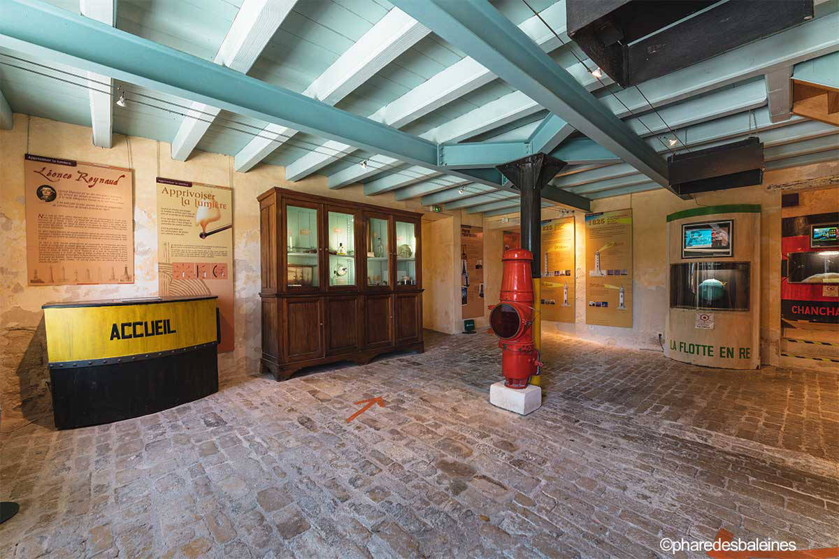 Situé dans un bâtiment ayant servi de lieu de vie pour les gardiens et leurs familles mais aussi de stockage pour les combustibles servant à faire scintiller le phare.